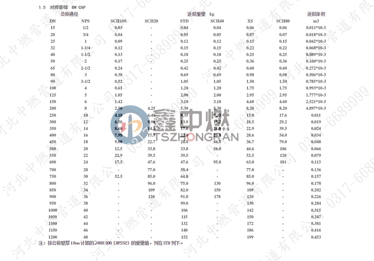 对焊异径管重量表